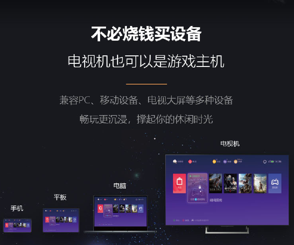 顺网云玩不仅支持PC、手机和平板等多终端使用,更可无缝切换至电视大屏,为用户带来全方位的沉浸式游戏体验。