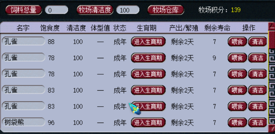 如果需要同时养五个号,可以考虑使用一个专门的摆摊号。这样,总共需要六个号。通过这样的组合,可以有效提升养殖效率。养树袋熊的原因之一就是饲料的节省。初级牧场可以养5个动物,前期应该每天在相应的牧场中繁殖,尽量繁殖超过当前上限2-3个,这样可以应对突发情况。升级到中级牧场时,可以养5个动物,而升级到高级牧场时可以养7个动物。在达到专精阶段时,需要兽皇技能达到5级后才能申请。