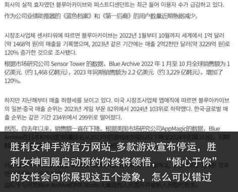 胜利女神手游官方网站_多款游戏宣布停运,胜利女神国服启动预约你终将领悟,“倾心于你”的女性会向你展现这五个迹象,怎么可以错过