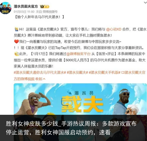 胜利女神皮肤多少钱_手游热议周报:多款游戏宣布停止运营,胜利女神国服启动预约,速看