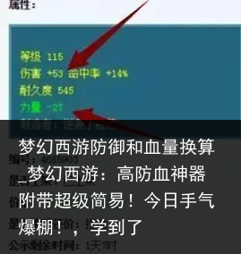 梦幻西游防御和血量换算_梦幻西游:高防血神器附带超级简易!今日手气爆棚!,学到了