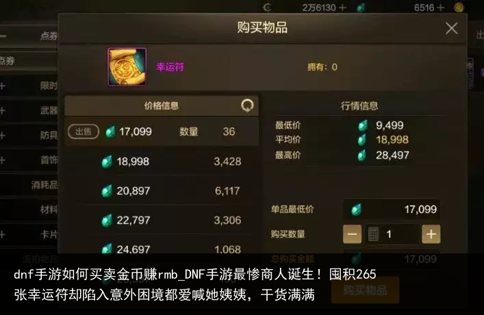 dnf手游如何买卖金币赚rmb_DNF手游最惨商人诞生!囤积265张幸运符却陷入意外困境都爱喊她姨姨,干货满满