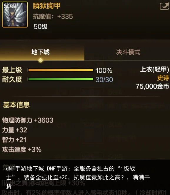 dNf手游地下城_DNF手游:全服务器独占的“1级战士”,装备全强化至 20,抗魔值竟如此之高?,满满干货