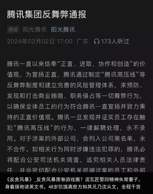 《反贪风暴》_反贪风暴席卷游戏圈?泥瓦匠娶回精神失常妻子,身着旗袍读英文书,48岁饥饿离世方知其兄乃沈从文,全程干货