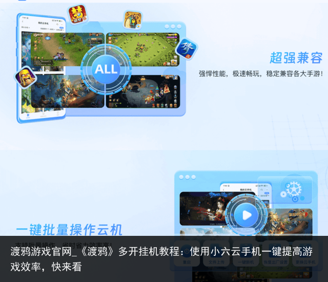 使用小六云手机,玩家可以轻松实现《渡鸦》的多开与一键操作,挂机赚取游戏资源变得更加便捷高效此外,小六云手机还支持多款游戏的挂机和自动升级功能,是广大游戏玩家的理想选择感兴趣的朋友们不妨试试看,让游戏之旅更加轻松愉快!。